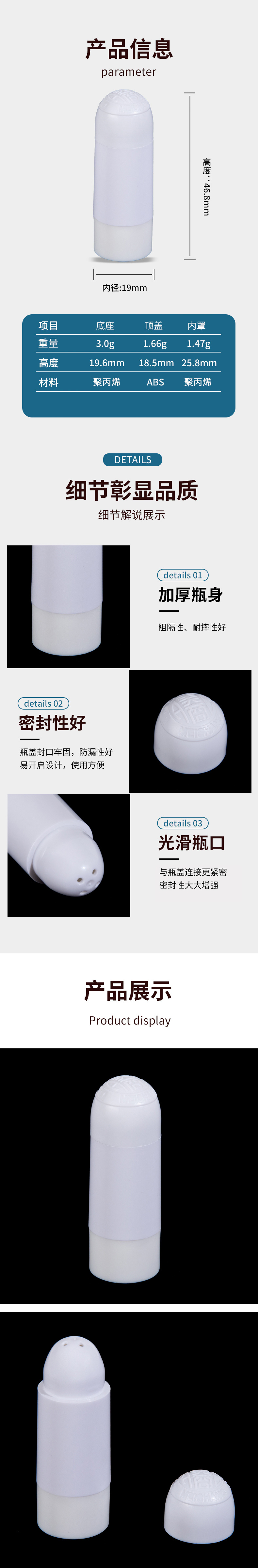 規(guī)格型號:BH-4,4g 重量(g):4.35 高度(mm):46.8 內(nèi)徑(mm):19.0 材質(zhì): ABS